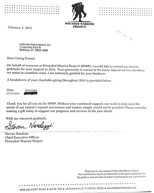 LATICRETE effettua una donazione al Wounded Warrior Project (WWP)